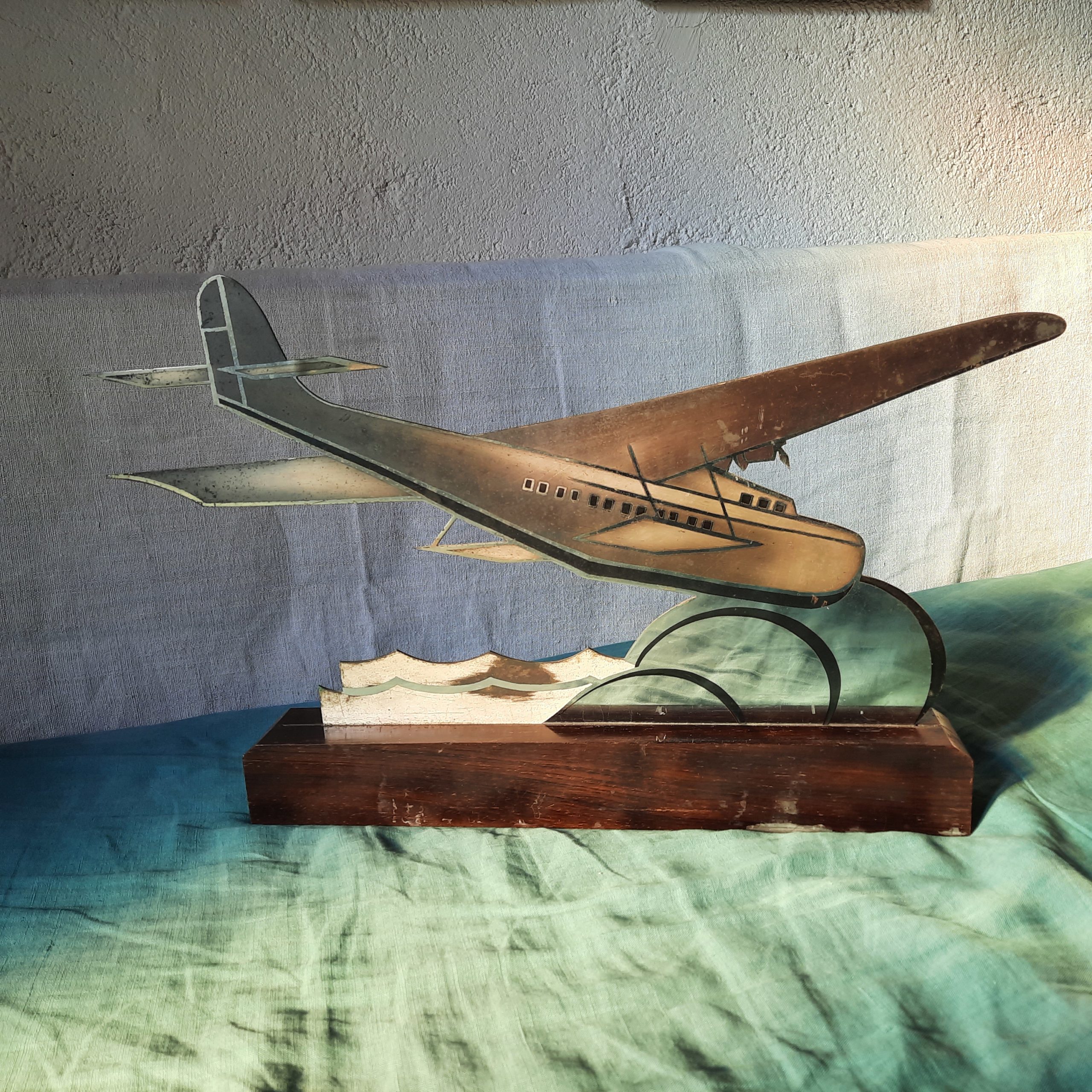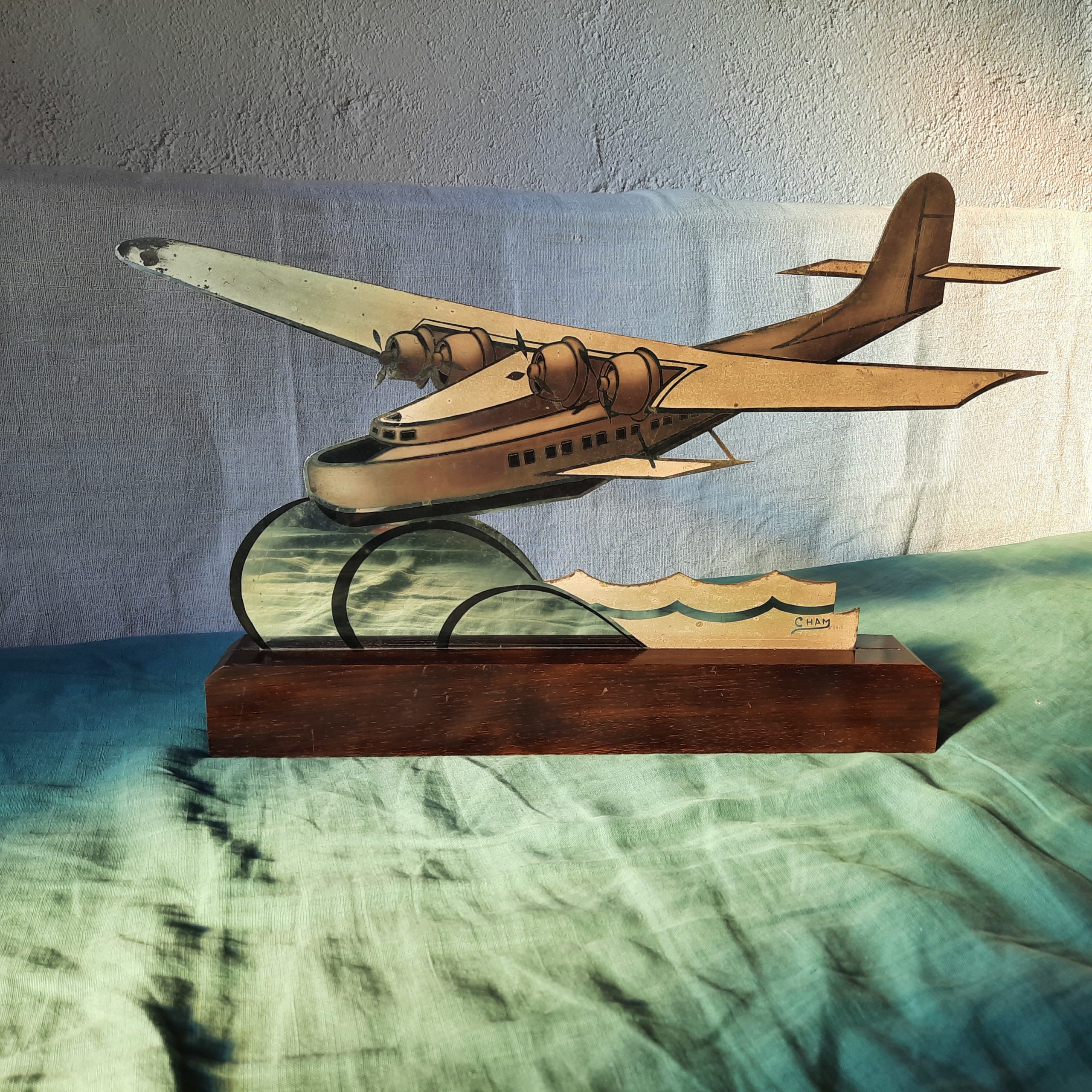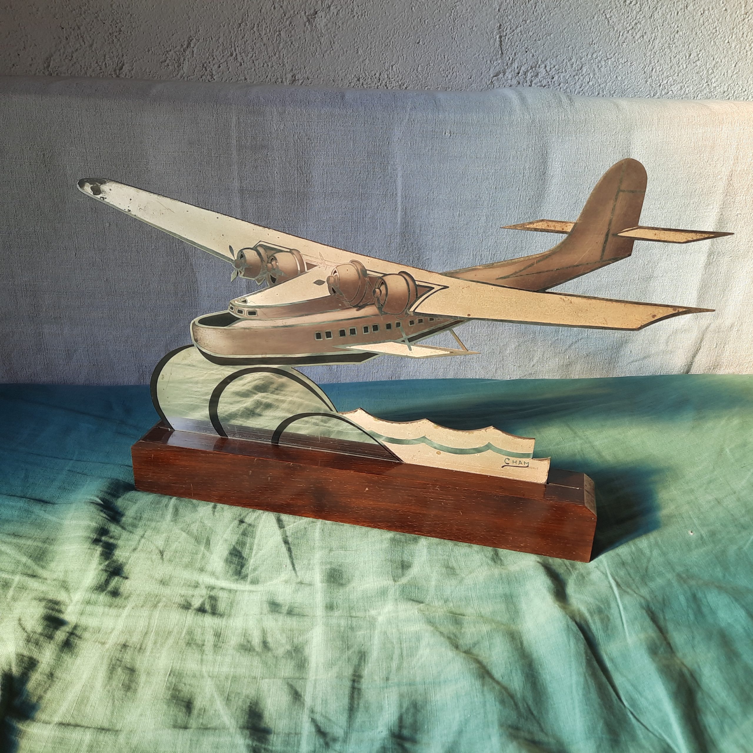 Hydravion art déco Cham en bronze Hydravion art déco Cham en bronze Hydravion art déco Cham en bronze hauteur: 35 cmlongueur: 55 cmen bronze argentécirca 1920 Autres découvertes :Lampe pompier Art Déco modernisteCendrier montagne en bronze argentéLampe boule turquoise à chapeauCendrier Batmobile en bronze argenté