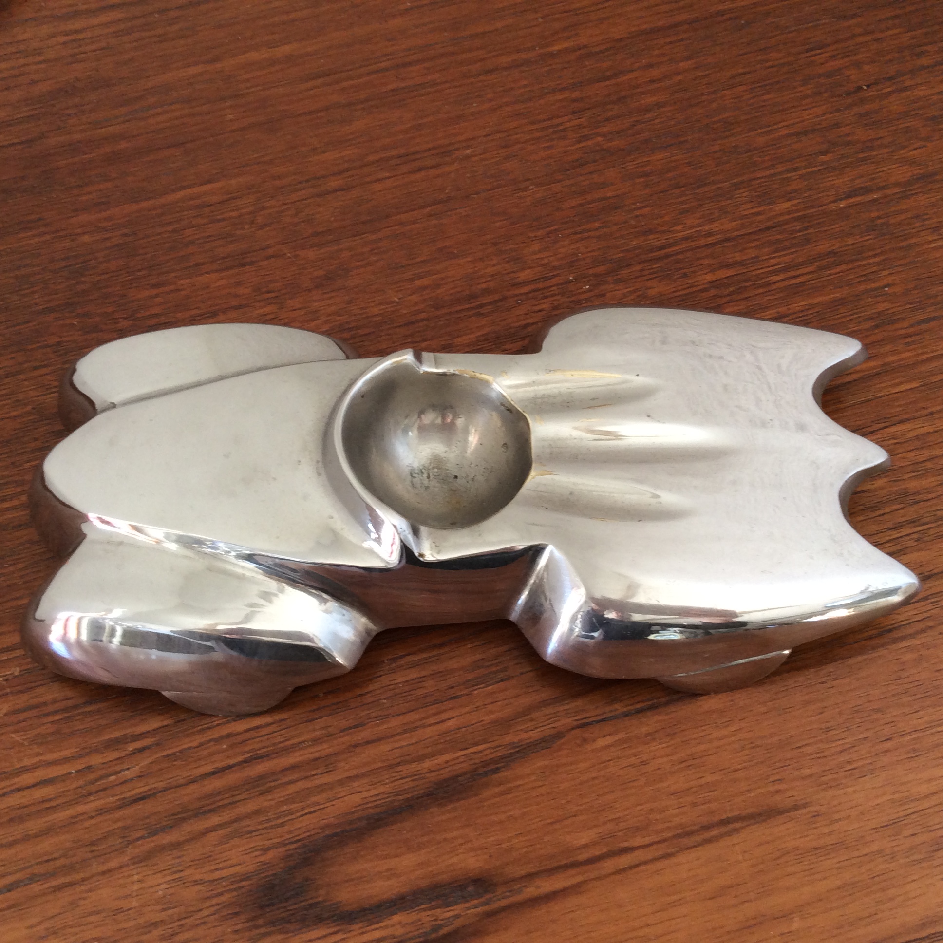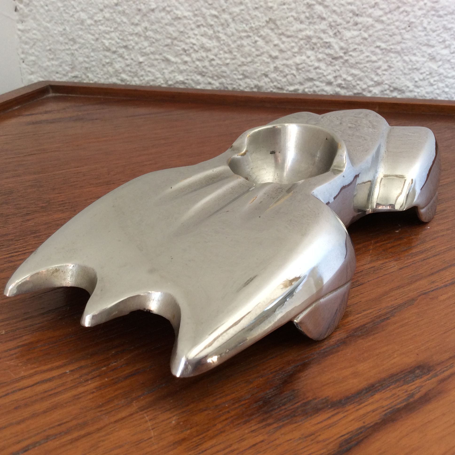 Rare cendrier Batmobile en bronze argenté, tout droit sorti de l’univers de Batman.