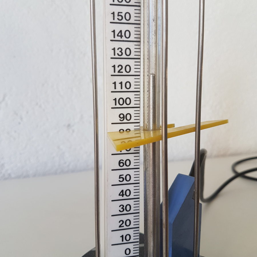 Comme tout tensiomètre qui se respecte, il donne la tension du patient au médecin. Très précis, le mercure monte dans le tube gradué, la partie jaune permettant de servir de marqueur.